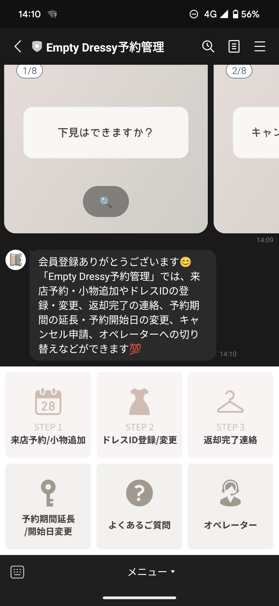 予約期間外でしたら、Empty DressyオペレーターのLINEアカウントにご連絡ください。