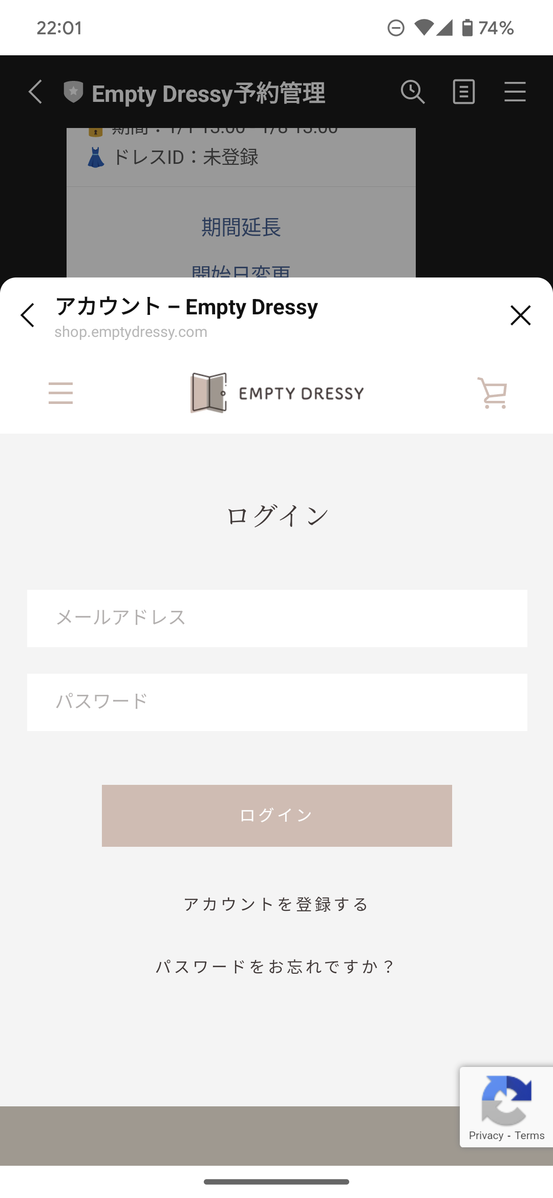 「Empty Dressy予約管理」