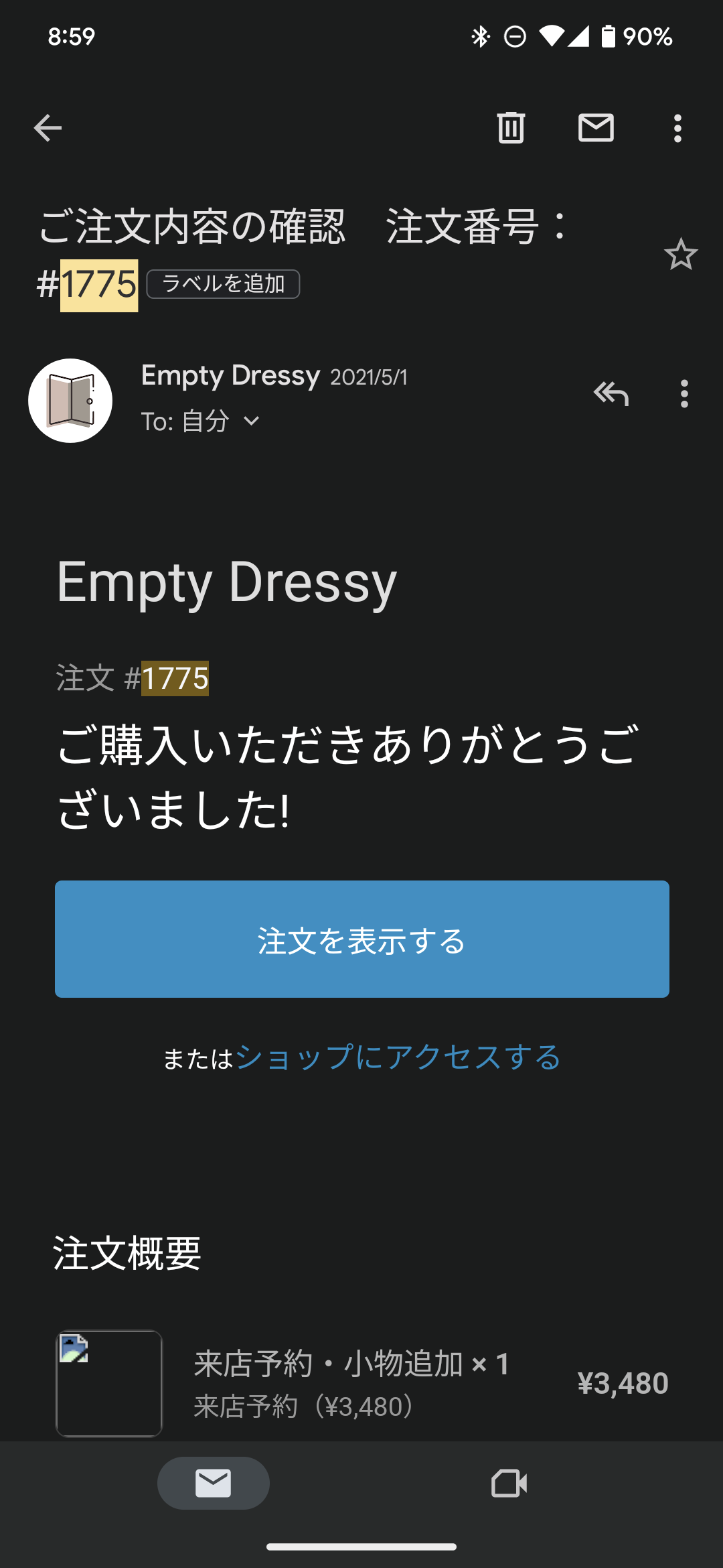 個別の発行を希望する場合は、#から始まる注文番号と領収書発行希望の旨を、Empty DressyオペレーターのLINEアカウントにご連絡ください。