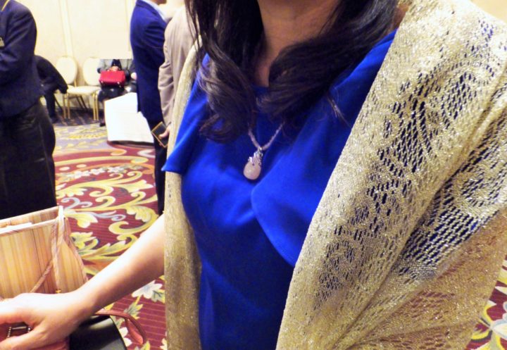 派手な色ではないのですが、知的で美しく鮮やかな色が、パーティでも映えます。