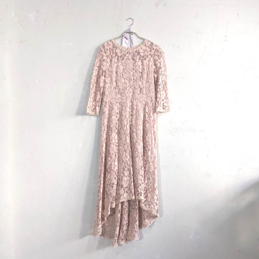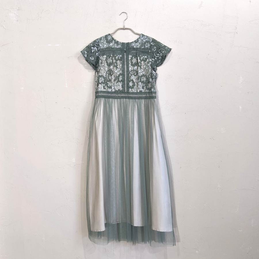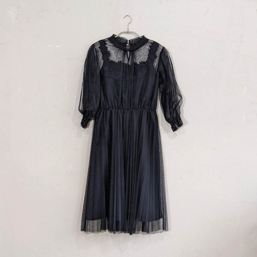 上半身がレース、下半身が無地の生地という異素材使いもウエストラインが気にならなくなります。