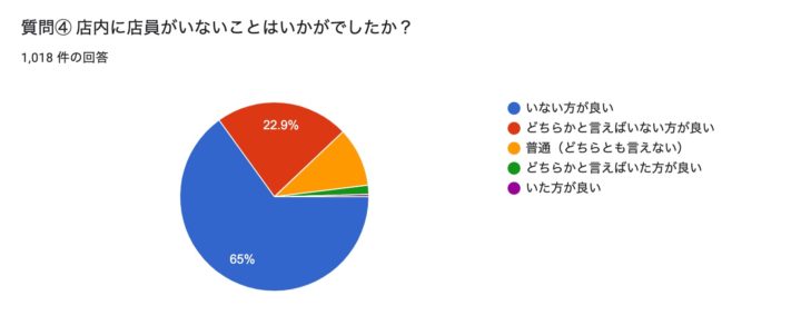 正直予想外ではありますが、およそ9割の方が、店員はいない方が良いと思っているようです!