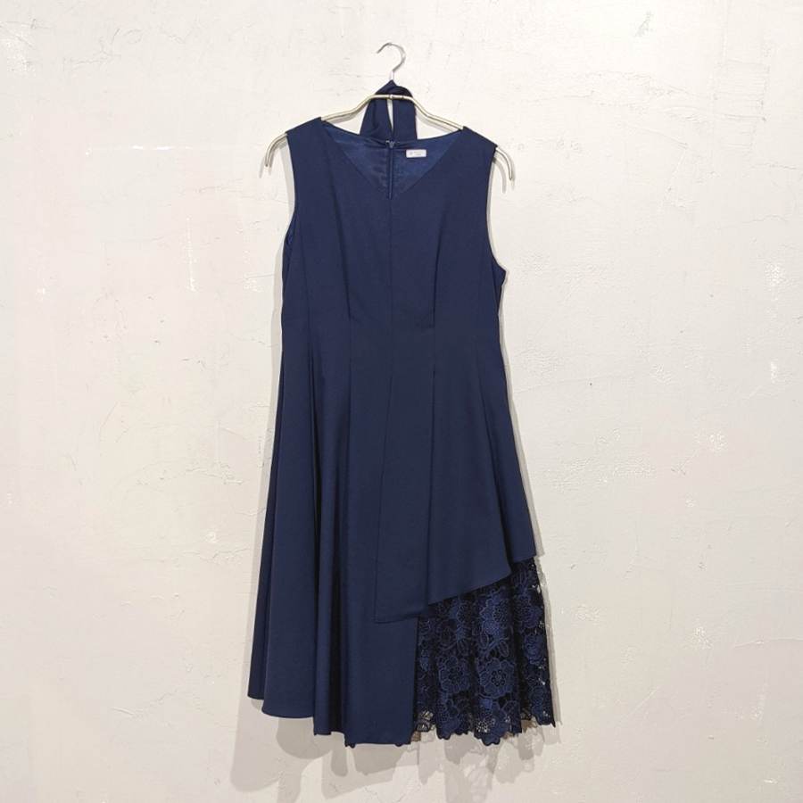 ウェストタック入り花柄刺繍レース使いギャップレングス丈ワンピース Dorry Doll M/Freeサイズ ネイビー