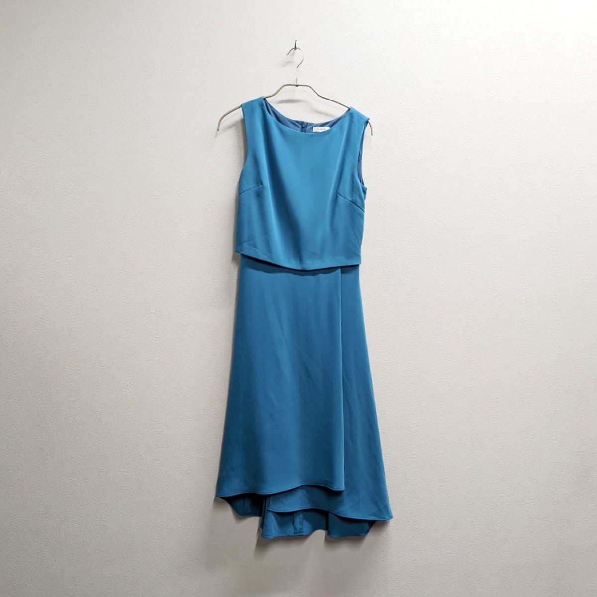 広がり過ぎないフレアーで大人に着れるワンピースです。 お色味も鮮やかで、パーティーシーンに活躍します。