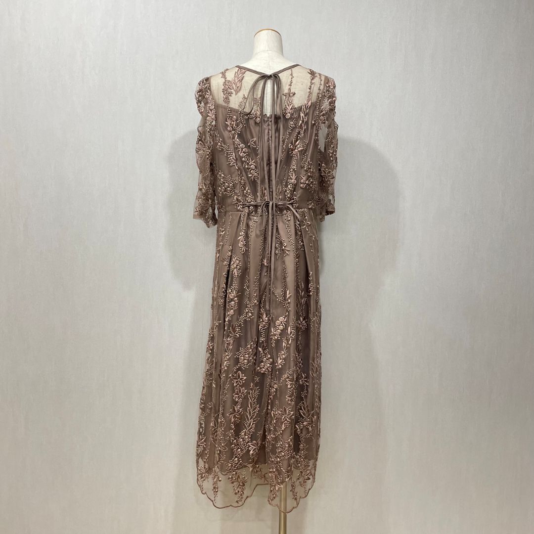 チュール×総刺繍ギャザースリーブドレス 2Lサイズ ブラウン